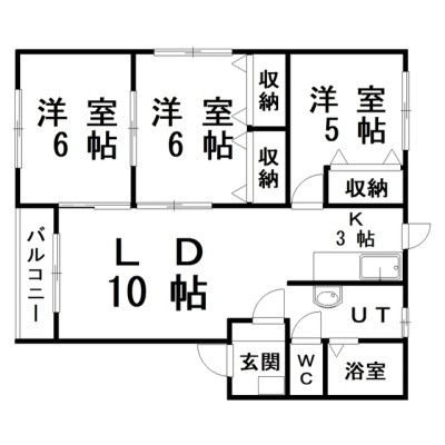 3LDK(65.7m²)└ LD10×K3×洋6×洋6×洋5