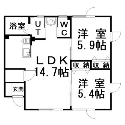 2LDK(53.13m²)└ LDK14.7×洋5.9×洋5.4