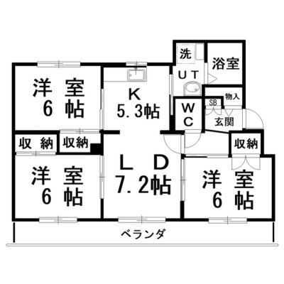 3LDK(66.14m²)└ LD7.2×K5.3×洋6×洋6×洋6
