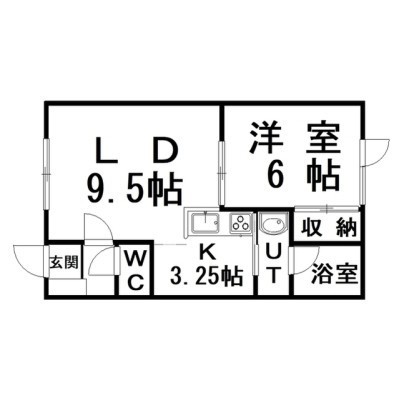 1LDK(40.09m²)└ LD9.5×K3.2×洋6
