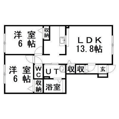 2LDK(55.88m²)└ LDK13.8×洋6×洋6