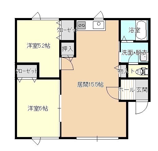 2DK(56.8m²)└ DK15.5帖 洋室6帖 洋室5.2帖