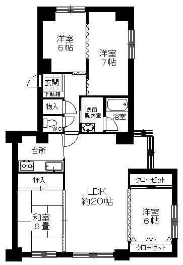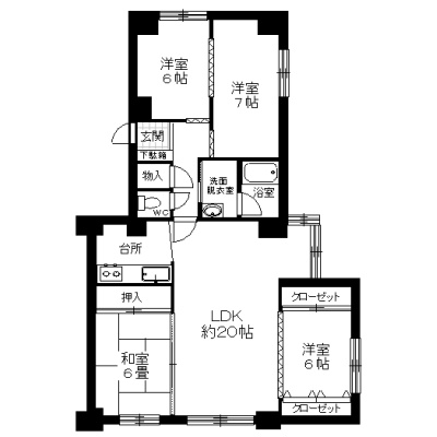 4LDK(88.97m²)└ 3階:LDK20帖 洋室6帖 洋室6帖 洋室7帖 和室6帖