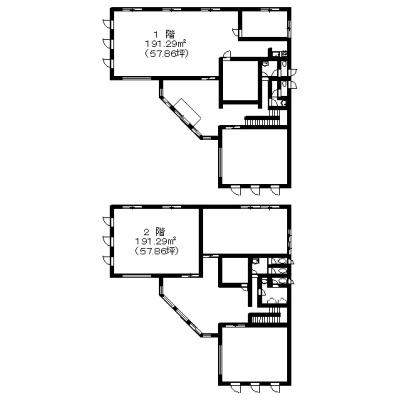 1階191.29㎡(57.86坪)2階191.29㎡(57.86坪)合計382.58㎡(115.73坪)