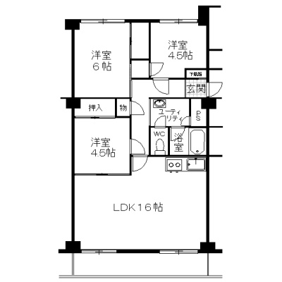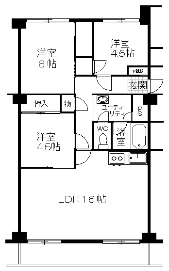 3LDK(70.4m²)└ 7階:LDK16帖 和室4.5帖 和室6帖 洋室4.5帖