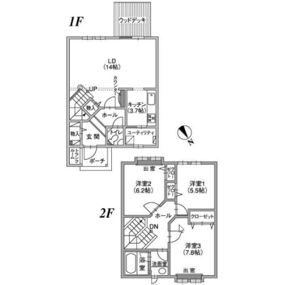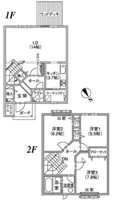 3LDK(99.78m²)└ 1階:LDK14.37帖 / 2階:洋室5.5帖 洋室6.2帖 洋室7.8帖