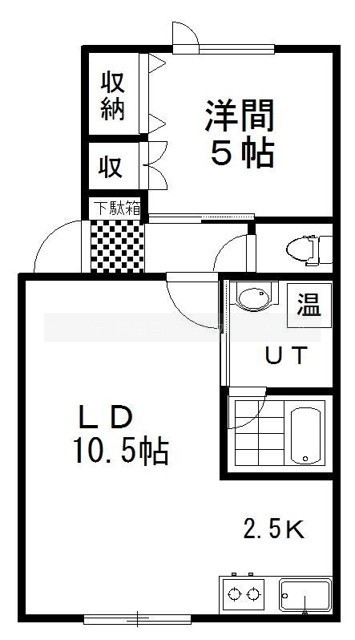 1LDK(43.07m²)└ LD10.5帖 K2.5帖 洋室5帖