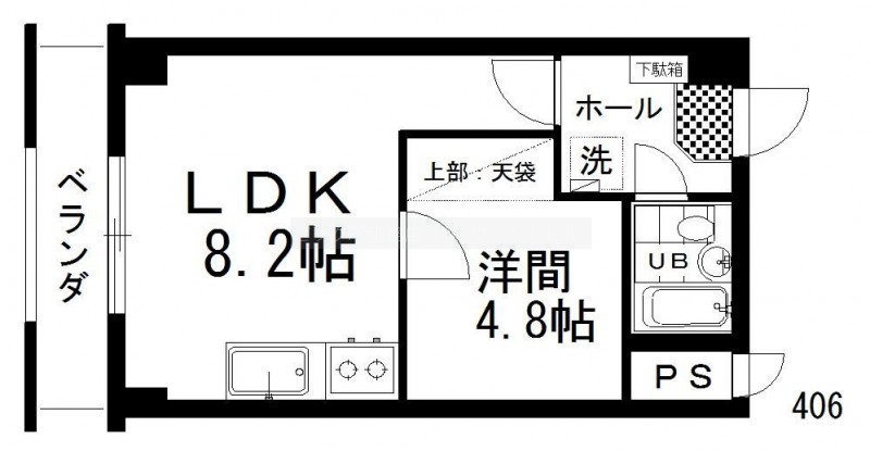 1LDK(28.91m²)└ LDK8.2帖 洋室4.8帖