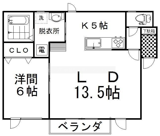 1LDK(54.67m²)└ LD13.5帖 K5帖 洋室6帖