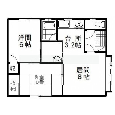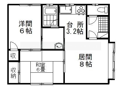 2LDK(51.01m²)└ LD8帖 K3.2帖 洋室6帖 和室6帖