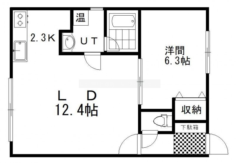 1LDK(43.32m²)└ LD12.4帖 K2.3帖 洋室6.3帖