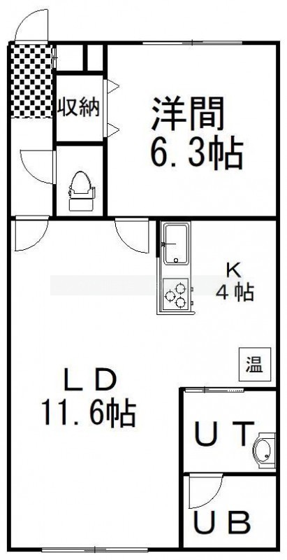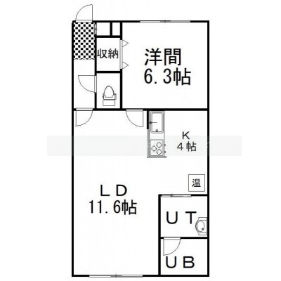 1LDK(45.54m²)└ LD11.6帖 K4帖 洋室6.3帖