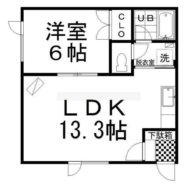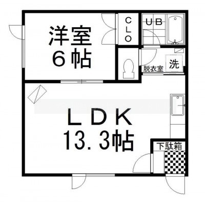 1LDK(38m²)└ LDK13.3帖 洋室6帖