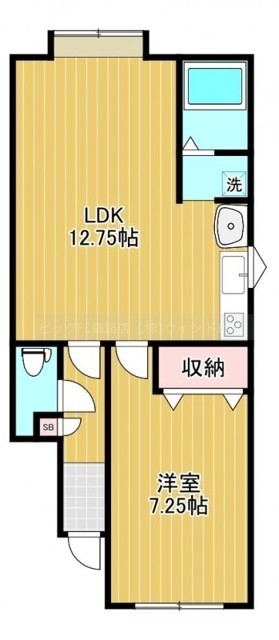 1LDK(42.52m²)└ LDK12.75帖 洋室7.25帖