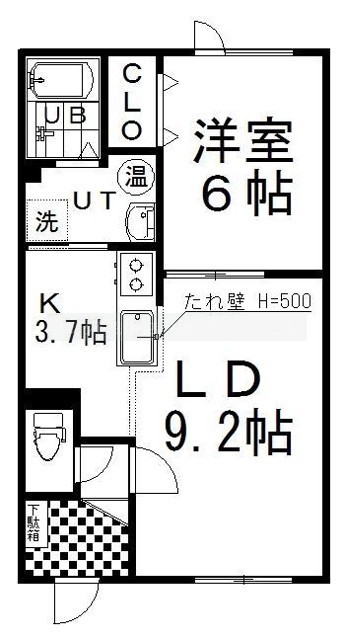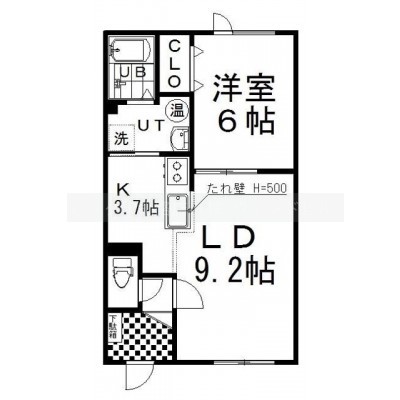 1LDK(43.04m²)└ LD9.2帖 K3.7帖 洋室6帖