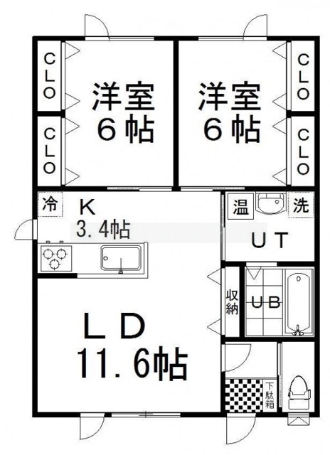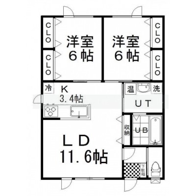 2LDK(62.1m²)└ LD11.6帖 K3.4帖 洋室6帖 洋室6帖