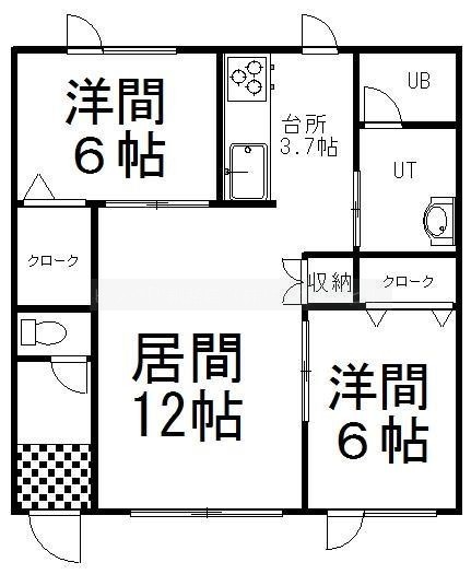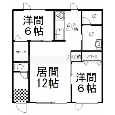 2LDK(63.34m²)└ LD12帖 K3.5帖 洋室6帖 洋室6帖