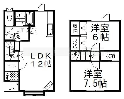 2LDK(59.54m²)└ LDK12帖 洋室6帖 洋室7.5帖