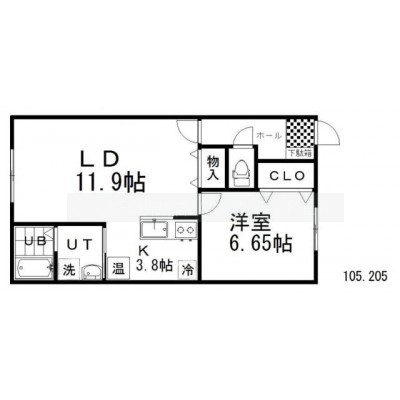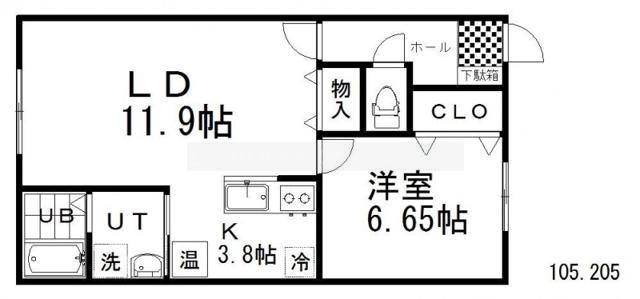1LDK(50.39m²)└ LD11.9帖 K3.8帖 洋室6.65帖