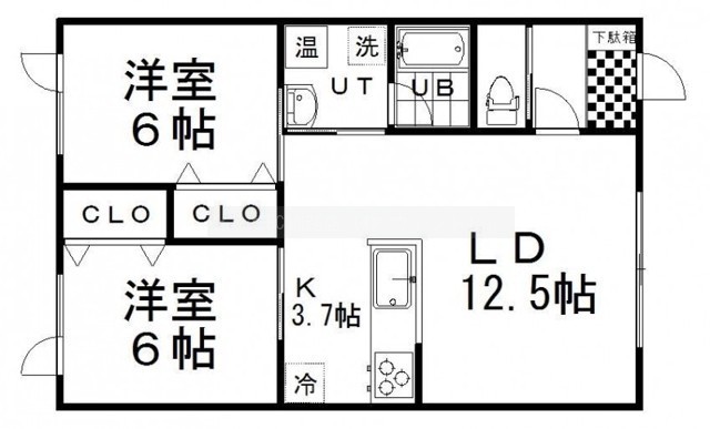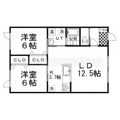 2LDK(60.86m²)└ LD12.5帖 K3.7帖 洋室6帖 洋室6帖