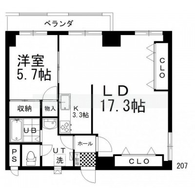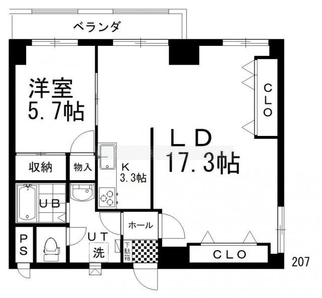 1LDK(60.82m²)└ LD17.3帖 K3.3帖 洋室5.7帖