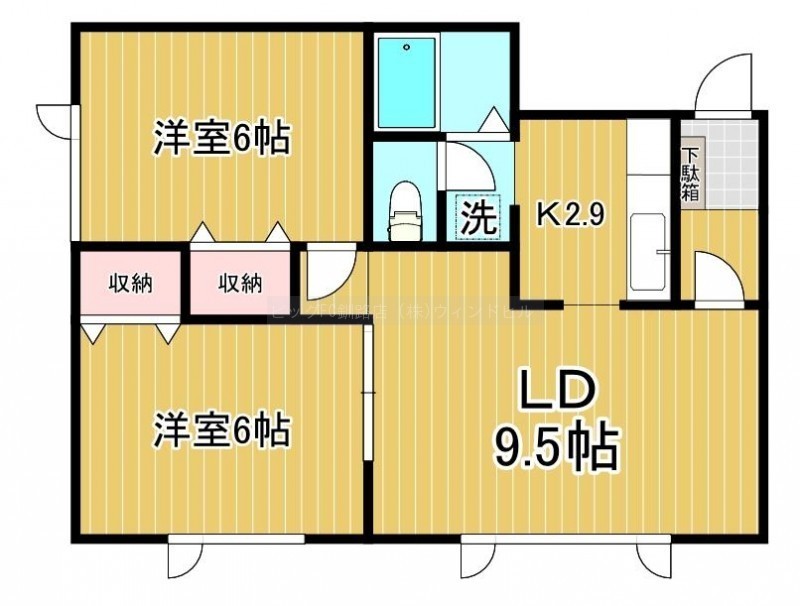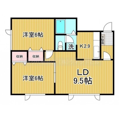 2LDK(49.86m²)└ LD9.5帖 K2.9帖 洋室6帖 洋室6帖