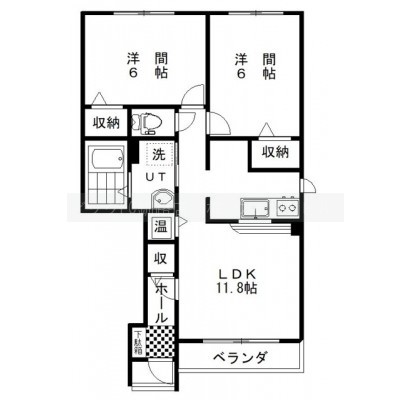 2LDK(52.53m²)└ LDK11.8帖 洋室6帖 洋室6帖