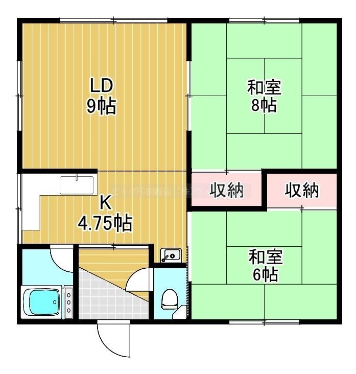 2LDK(55.08m²)└ LD9帖 K4.75帖 和室8帖 和室6帖