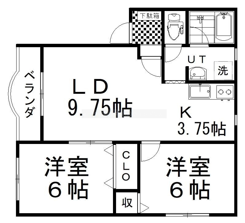 2LDK(53.05m²)└ LD9.75帖 K3.75帖 洋室6帖 洋室6帖