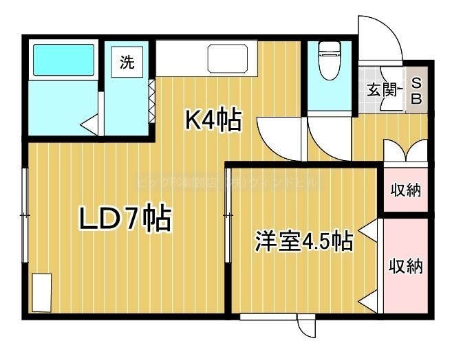 1LDK(35.68m²)└ LD7.5帖 K3.5帖 洋室4.5帖