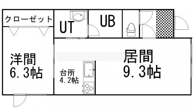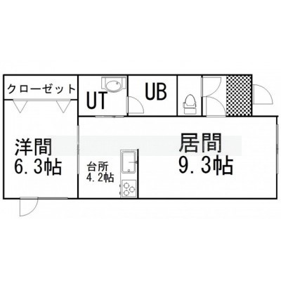 1LDK(44.16m²)└ LD9.3帖 K4.2帖 洋室6.3帖