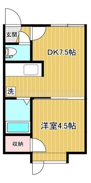 1DK(25.51m²)└ DK7.5帖 洋室4.5帖