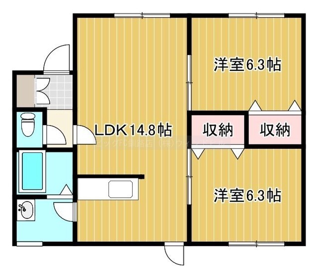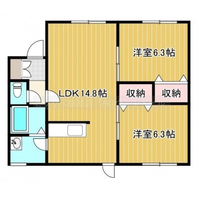 2LDK(59m²)└ LDK14.8帖 洋室6.3帖 洋室6.3帖