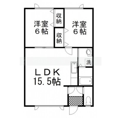 2LDK(56.7m²)└ LDK15.5帖 洋室6帖 洋室6帖