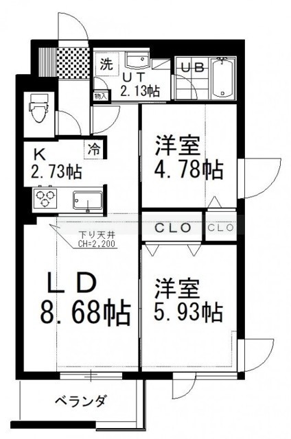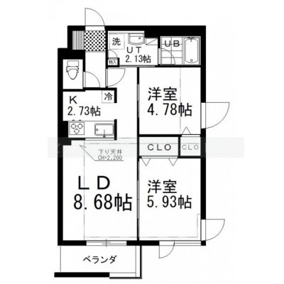 2LDK(52.73m²)└ LD8.68帖 K2.73帖 洋室4.78帖 洋室5.93帖