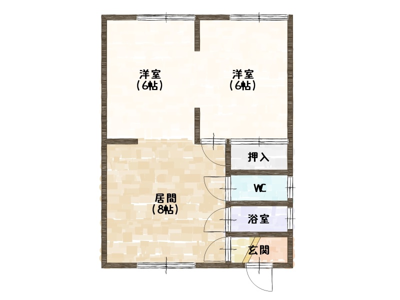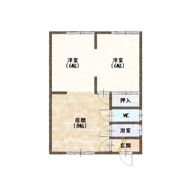 2DK(39.74m²)└ DK8帖 洋室6帖 洋室6帖