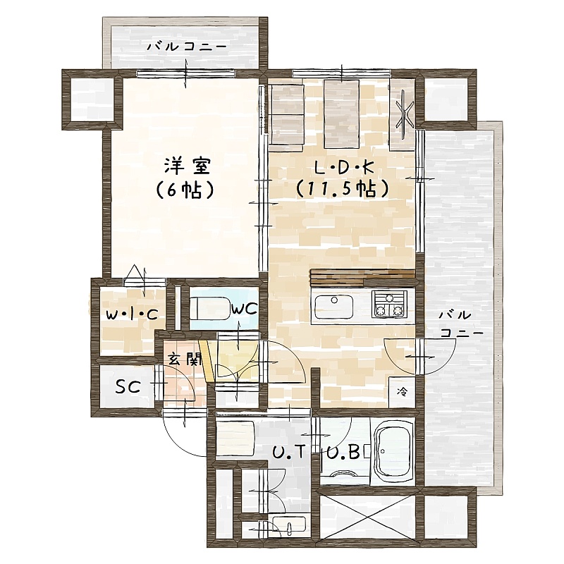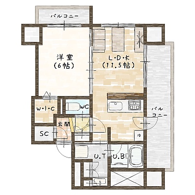 1LDK(40.79m²)└ LDK11.5帖 洋室6帖
