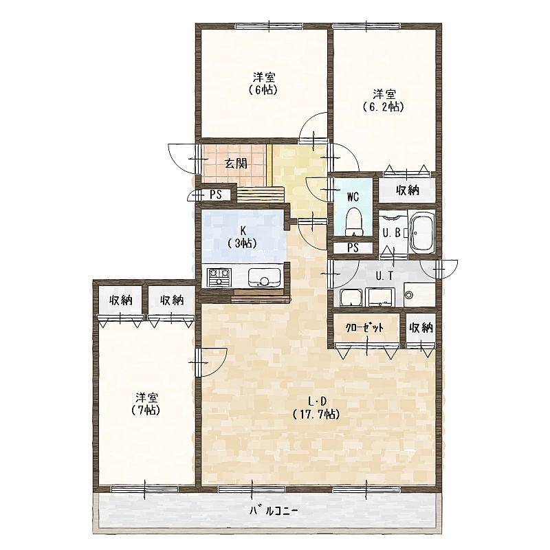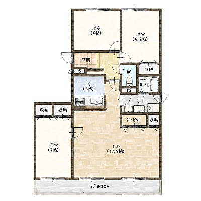 3LDK(78.54m²)└ LD17.7帖 K3帖 洋室7帖 洋室6.2帖 洋室6帖