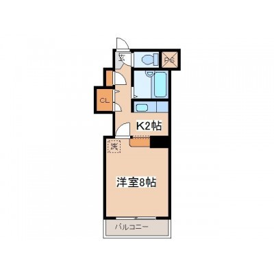 1K(24.9m²)└ 洋室8帖 K2帖