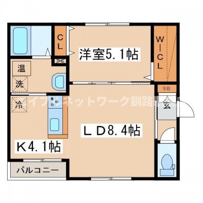 1LDK(42.66m²)└ LD8.4帖 K4.1帖 洋室5.1帖