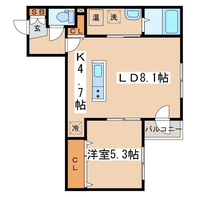 1LDK(43.37m²)└ LD8.1帖 K4.7帖 洋室5.3帖
