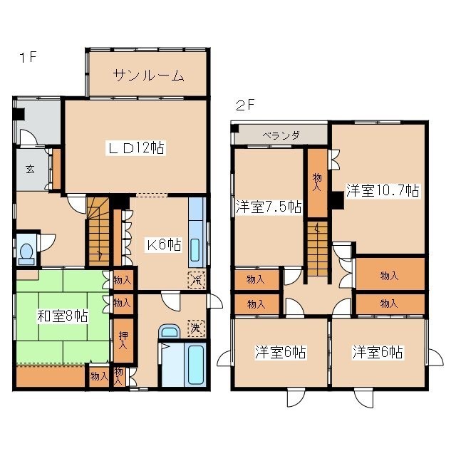 5LDK(153.9m²)└ LD12帖 K6帖 和室8帖 洋室10.7帖 洋室7.5帖 洋室6帖 洋室6帖