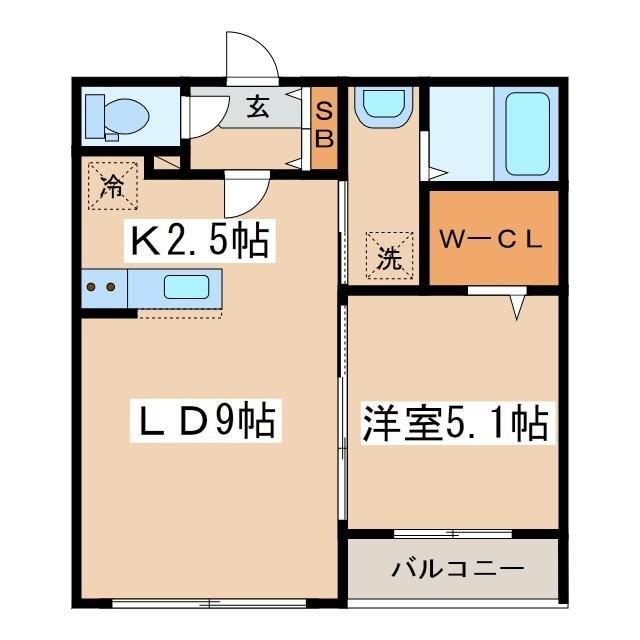 1LDK(38.12m²)└ LD9帖 K2.5帖 洋室5.1帖