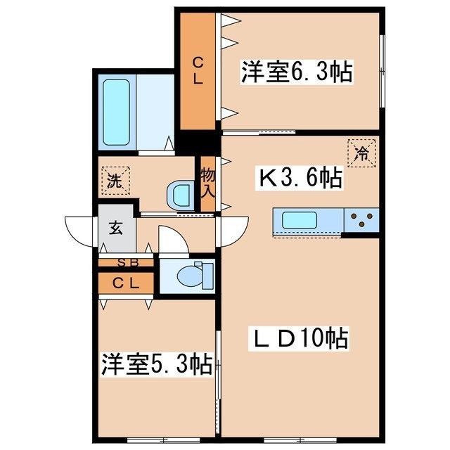 2LDK(58.38m²)└ LD10帖 K3.6帖 洋室5.3帖 洋室6.3帖