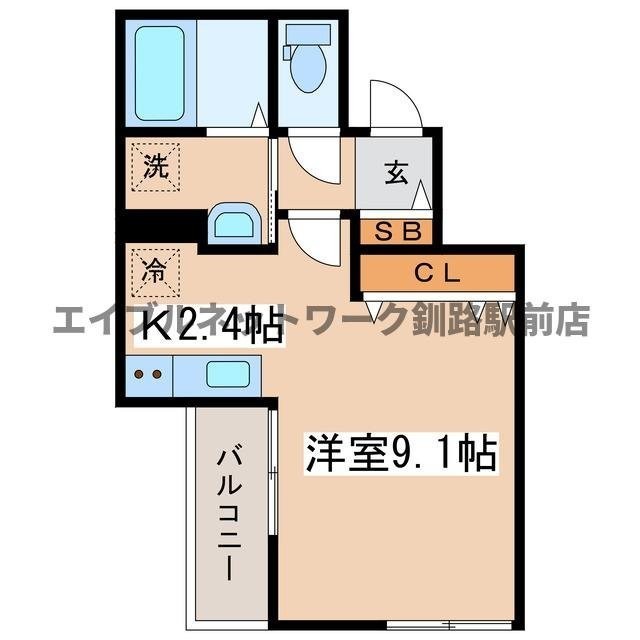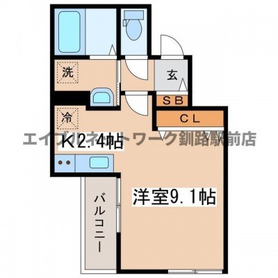 1K(29.45m²)└ 洋室9.1帖 K2.4帖