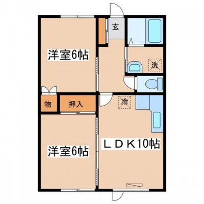 2LDK(48.34m²)└ LDK10帖 洋室6帖 洋室6帖