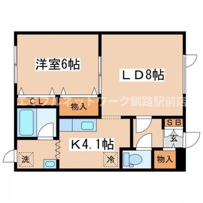 1LDK(42.1m²)└ LD8帖 K4.1帖 洋室6帖
