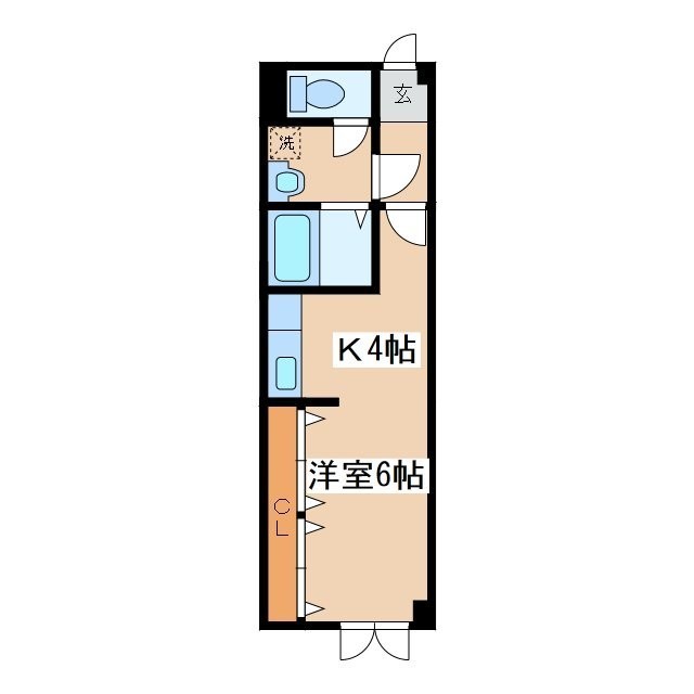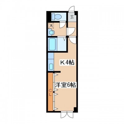 1K(28.8m²)└ 洋室6帖 K4帖
