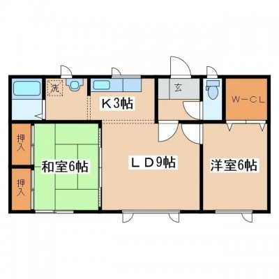 2LDK(55.89m²)└ LD9帖 K3帖 洋室6帖 和室6帖