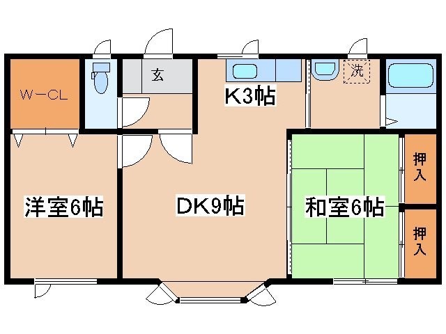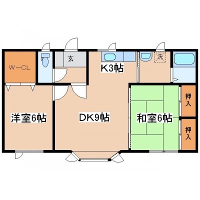 2LDK(55.89m²)└ LD9帖 K3帖 洋室6帖 和室6帖